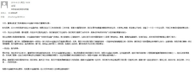 以下是周鸿祎内部邮件全文: